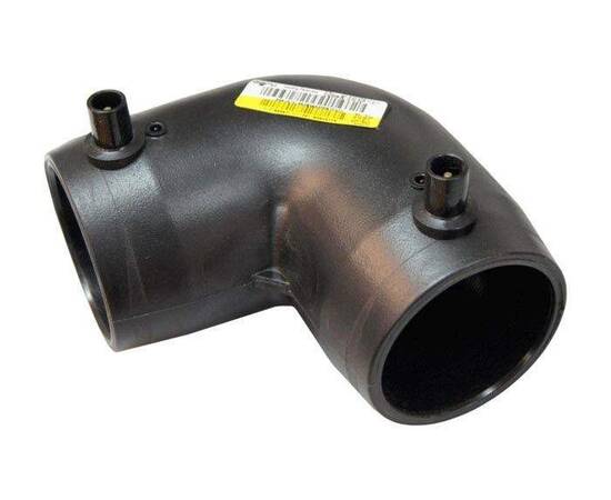 Отвод электросварной для труб, полиэтиленовый, низкого давления марки ПЭ100, SDR 11, диаметром 90 мм, с углом поворота 90, для питьевой или технической воды, так и для транспортировки жидких газов, других химических жидких или газообразных веществ к которым стоек полиэтилен.